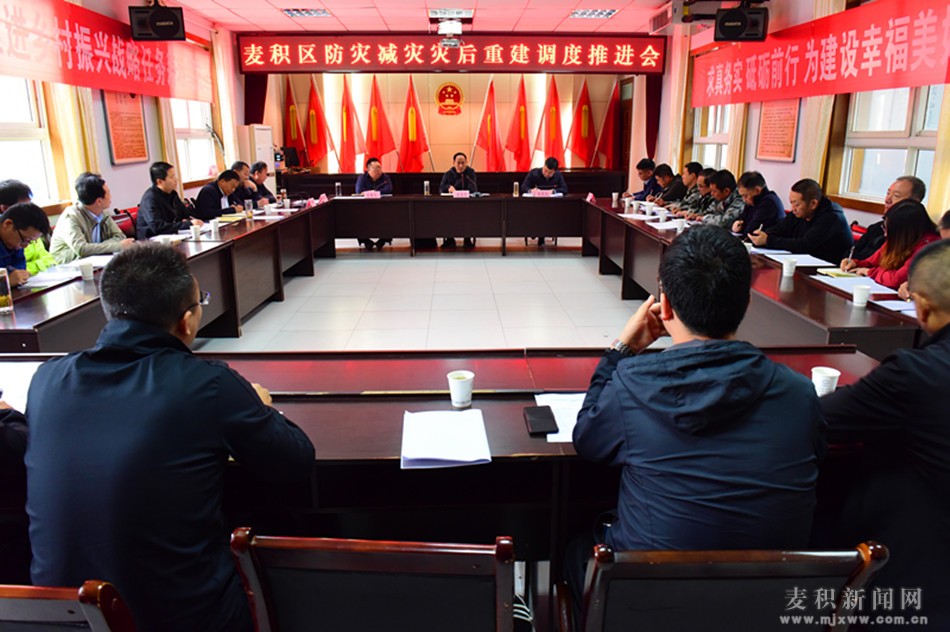 現(xiàn)場督查調度后,在東岔鎮(zhèn)政府召開了麥積區(qū)防災減災災后重建調度推進會。會上聽取了利橋鎮(zhèn)、三岔鎮(zhèn)、東岔鎮(zhèn)受災情況匯報,參會部門匯報了各自工作開展情況,與會領導結合各自分管領域作了工作安排,會議就做好當前全區(qū)防災減災以及災后重建工作進行詳細安排部署。