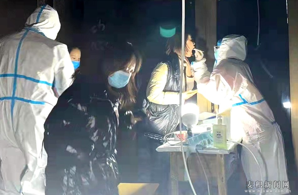 在城區(qū)多處布點進行全民核酸檢測采樣工作