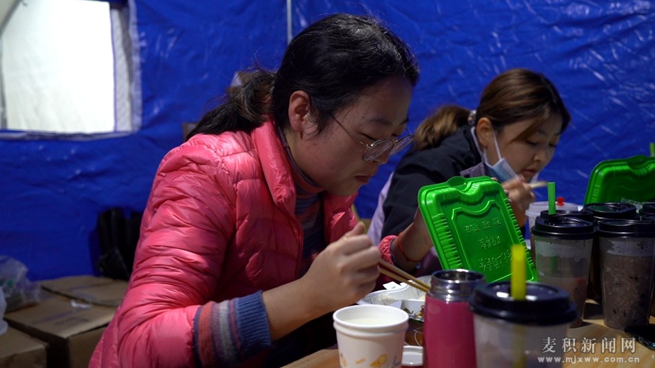 連日來(lái),高強(qiáng)度的核酸檢測(cè)采樣工作,讓醫(yī)護(hù)人員、警察、社區(qū)工作人員和志愿者相當(dāng)辛苦,他們晝夜堅(jiān)守,經(jīng)常是換班下來(lái)稍作調(diào)整又立馬回到自己的崗位。記者在現(xiàn)場(chǎng)看到,都已經(jīng)晚上十點(diǎn)了,防疫工作人員才開(kāi)始新一輪的換班吃飯,而吃飯的地方僅僅是一張臨時(shí)搭建的簡(jiǎn)易桌,剛換班的防疫工作人員吃著早已涼透的晚餐,他們的臉上掛著疲憊的笑容。雖然一天冷餓交替,精疲力盡,但他們一絲不茍,勇往前行,無(wú)懼無(wú)畏,毅然堅(jiān)守在自己的崗位,奉獻(xiàn)著自己的力量。