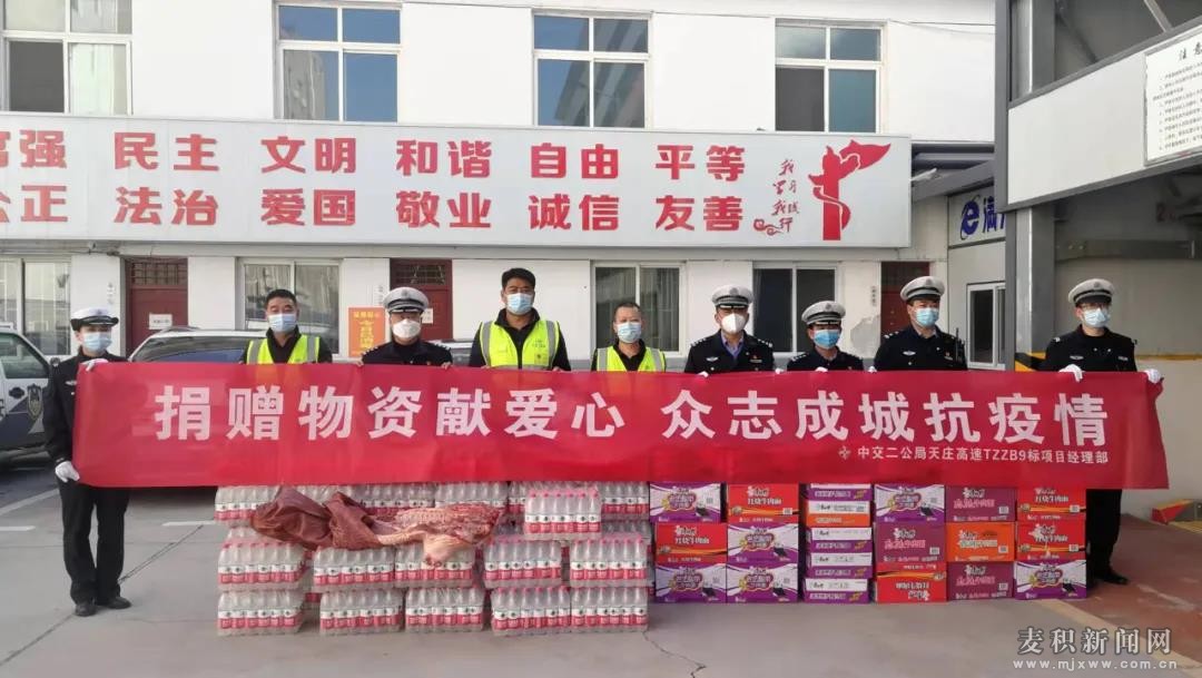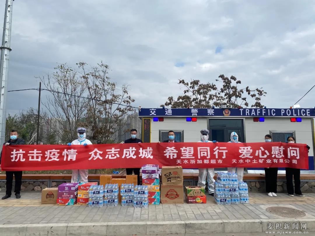 10月29日、30日,中交二公局天莊高速TZZB9項(xiàng)目經(jīng)理部、天水浙加都超市、天水中土礦業(yè)有限公司、天水玉龍辦公設(shè)備有限公司、麥積區(qū)東柯大道喜全農(nóng)家樂(lè)、麥積區(qū)小鎮(zhèn)人家飯店等社會(huì)各界和愛(ài)心人士紛紛前往一線慰問(wèn)麥積公安分局交警大隊(duì)執(zhí)勤民輔警,并送上飯菜、牛奶、方便面、礦泉水、水果以及口罩等生活必需品,使執(zhí)勤人員倍感溫暖,深受鼓舞。