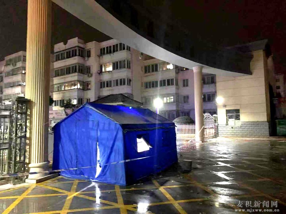 11月6日晚9時許,當居民都在家里享受茶余飯足的愜意時光時,來自麥積公安分局及區(qū)城管局廣場管理處的志愿者們正在小區(qū)值守點忙碌著,嚴控車輛和人員進出,做好各項防控工作。雖然準備了取暖設(shè)備,可是在零下的長夜里效果甚微。此刻,一個搭起的簡易帳篷,就是他們筑起的“城池營地”。