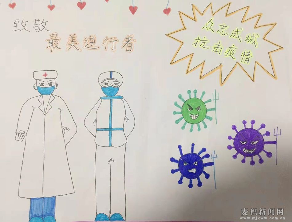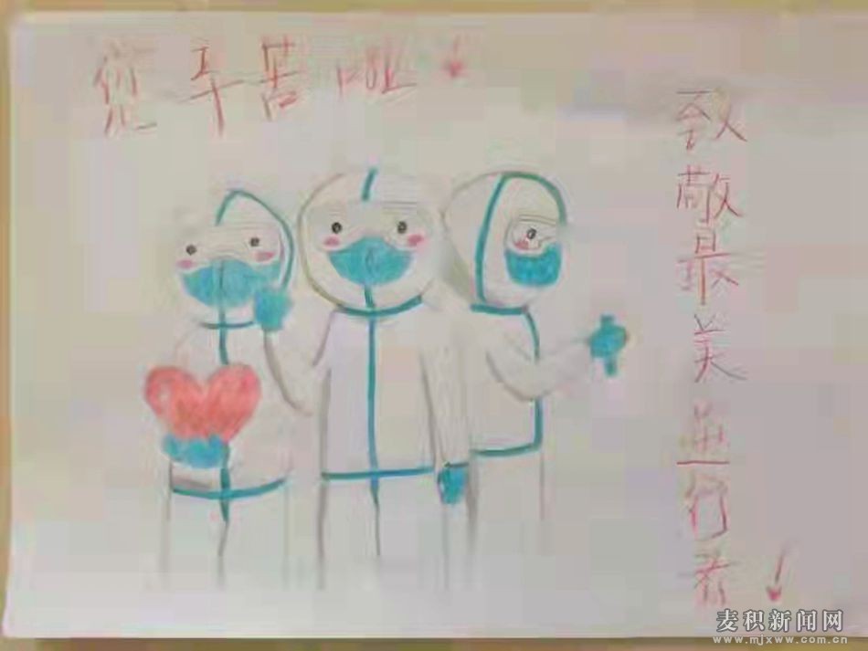 麥積區(qū)融媒體中心訊(記者 吳雪镕) 疫情發(fā)生以來(lái),醫(yī)護(hù)人員連日忙碌奔波抗疫一線。麥積區(qū)建新路幼兒園的小朋友們,精心為“白衣天使”送上了一幅幅飽含真情的繪畫(huà)作品,用畫(huà)筆展現(xiàn)醫(yī)護(hù)工作者抗疫路上的大愛(ài),以表達(dá)自己的敬意。