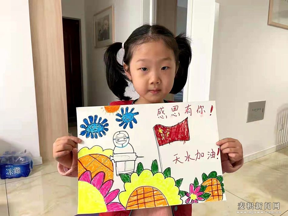 建新路幼兒園大(一)班王佳穎說(shuō):“奮戰(zhàn)在一線的叔叔阿姨們,你們辛苦了,甘肅加油!天水加油!希望我們的城市趕快好起來(lái)。”