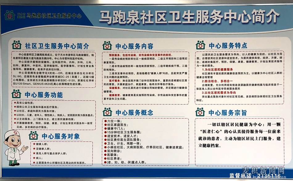 據(jù)了解,實(shí)施標(biāo)準(zhǔn)化建設(shè)之后的麥積區(qū)馬跑泉社區(qū)衛(wèi)生服務(wù)中心是目前轄區(qū)范圍最廣的社區(qū)衛(wèi)生服務(wù)中心,它承擔(dān)著轄區(qū)“六位一體”基本公共衛(wèi)生服務(wù)的職能,為居民提供常見(jiàn)病、多發(fā)病的基本診療,同時(shí)建立轄區(qū)居民健康檔案,開(kāi)展健康教育、慢性病隨訪及老年人保健等,讓轄區(qū)居民在家門口就能享受到先進(jìn)的醫(yī)療服務(wù)。