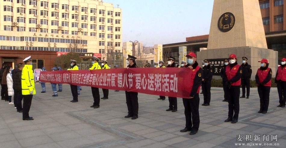 麥積區(qū)融媒體中心訊(記者 宋倩倩 劉秋鈺 王瑋瑕 王惠萍)1月10日是我國傳統(tǒng)節(jié)日“臘八節(jié)”,麥積區(qū)總工會(huì)攜手愛心企業(yè)開展“臘八節(jié)”愛心送粥活動(dòng),為麥積城區(qū)一線執(zhí)勤的交通警察、城管隊(duì)員、志愿者和環(huán)衛(wèi)工人們送去了熱氣騰騰的臘八粥、菜夾餅,讓他們?cè)诤锔惺艿絹碜陨鐣?huì)大家庭的溫暖和關(guān)愛。