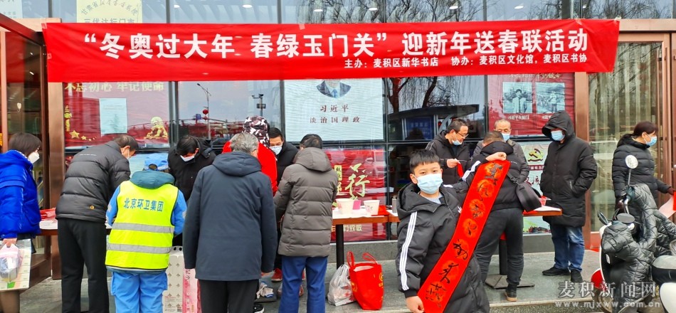 麥積區(qū)融媒體中心訊 為弘揚中華民族優(yōu)秀傳統(tǒng)文化,營造喜慶的節(jié)日氛圍,以北京冬奧會為契機,借助豐富多彩的冬奧文化活動,展現(xiàn)甘肅的獨特魅力和濃郁風(fēng)情,1月24日,由麥積區(qū)新華書店主辦,麥積區(qū)文化館、麥積區(qū)書協(xié)協(xié)辦的“冬奧過大年、春綠玉門關(guān)”迎新年送春聯(lián)活動在我區(qū)舉行,讓廣大群眾提前感受到了新年的氣息。