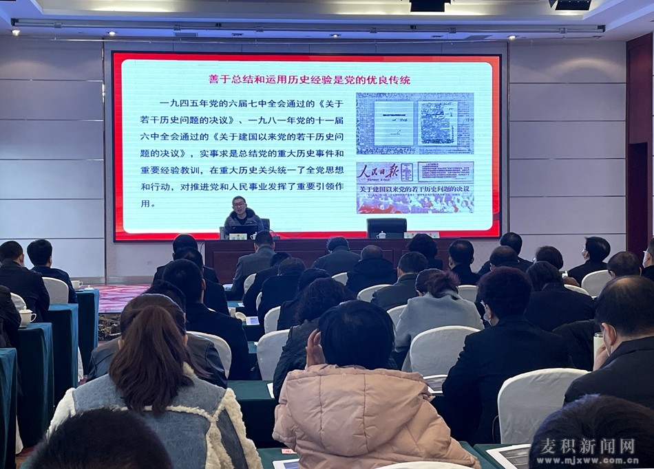麥積區(qū)融媒體中心訊(記者 張麗媛)2月24日,麥積區(qū)人大常委會召開深入學(xué)習(xí)貫徹黨的十九屆六中全會精神宣講報告會。邀請中共天水市委講師團(tuán)成員,市委黨校黨史與黨建教研室副主任、講師,天水市哲學(xué)學(xué)會理事侯強(qiáng)強(qiáng)作宣講報告。