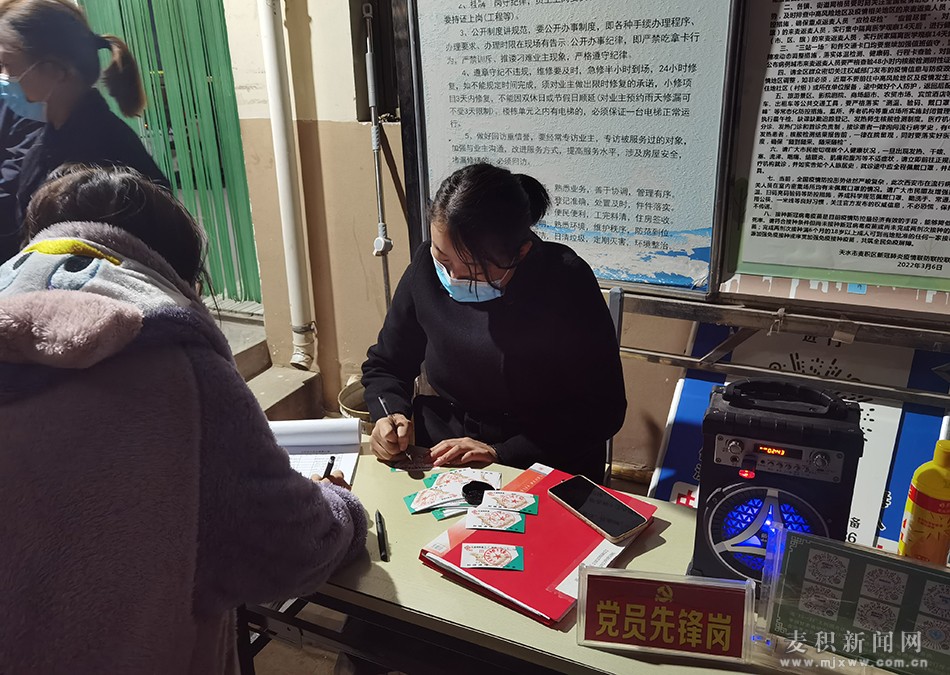 (北道埠街道西河苑小區(qū)工作人員正在辦理居民出入證)