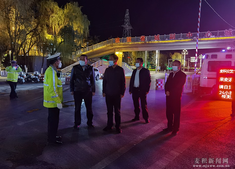麥積區(qū)融媒體中心訊 3月25日晚,麥積區(qū)委書記康泰來深入城區(qū)部分住宅小區(qū)、秦麥高速卡口督查疫情防控工作。區(qū)委副書記王明,區(qū)委常委、組織部部長(zhǎng)安偉,區(qū)委常委、政法委書記李東海一同督查。