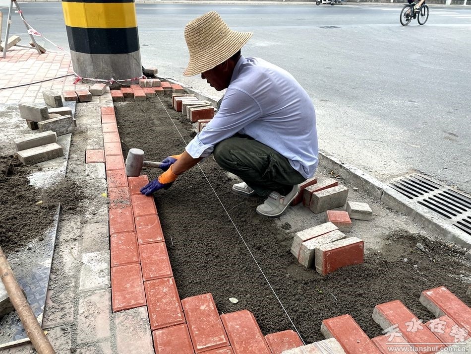 頂著高溫,在興隴路施工現(xiàn)場(chǎng),工人們現(xiàn)場(chǎng)設(shè)立警示牌,在做好安全防護(hù)措施的前提下,嚴(yán)格按照工藝技術(shù)操作規(guī)程,拆除原有地面磚、重新鋪裝盲道磚,緣石坡道拆除原有路緣石和人行道墊層、面磚,重新鋪裝人行道面磚,修補(bǔ)后的坑槽線條順暢、材料與原路一致,接頭平順。經(jīng)過緊張的施工,原本坑洼不平、破損嚴(yán)重的路面恢復(fù)到良好的通行狀態(tài),整體效果得到徹底改觀,讓市民出行更便利、更順暢、更安全。