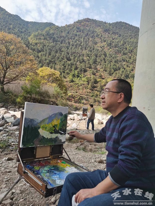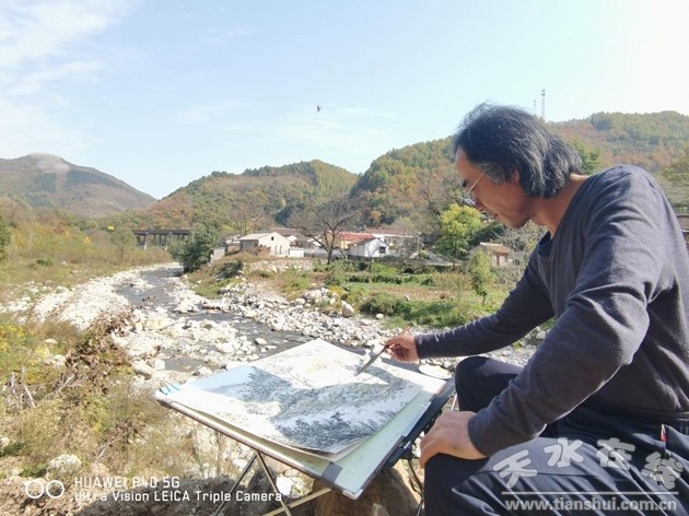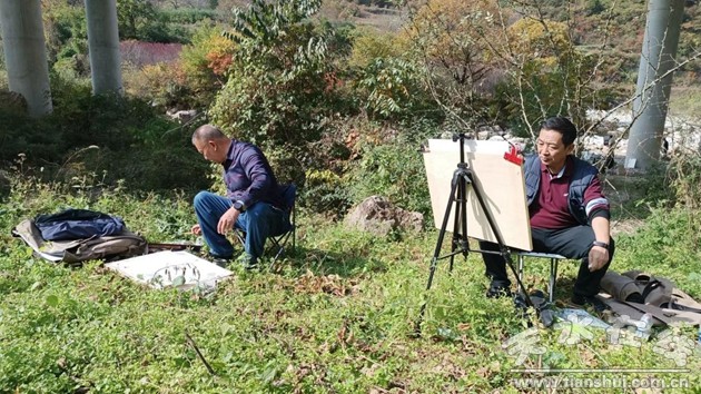 (天水市美術(shù)家協(xié)會(huì)部分主席團(tuán)成員、顧問、理事走進(jìn)東岔鎮(zhèn)寫生合影)