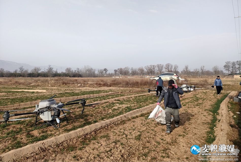 麥積區(qū)農(nóng)技中心副主任李富平指著現(xiàn)場(chǎng)的麥田告訴記者:“近期我區(qū)有過兩次有效降雨雪的過程,土壤墑情較好,我們作為農(nóng)業(yè)技術(shù)推廣部門,通過短信、微信群,及時(shí)通知種植戶追施接苗肥。同時(shí),我們通過第三方購(gòu)買服務(wù)的方式,對(duì)去年種植的10500畝冬小麥和8900畝的冬油菜示范點(diǎn),進(jìn)行了無人機(jī)統(tǒng)一噴灑服務(wù)!