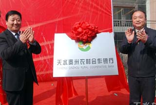 三月的秦安,桃花吐蕊,春意盎然。2008年3月16日,甘肅省農(nóng)村信用社聯(lián)合社理事長(zhǎng)雷志強(qiáng)、副理事長(zhǎng)梁春滿、綜合管理部副總經(jīng)理李哲、審計(jì)稽核部副總經(jīng)理蘇月梅、科技信息部副總經(jīng)理滑斌等一行,在天水市政府副市長(zhǎng)趙衛(wèi)東、天水市財(cái)政局局長(zhǎng)白曉玲、省聯(lián)社天水辦事處副主任徐永壽的陪同下赴秦安調(diào)研。