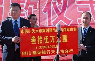 縣委、縣政府還召開了全縣抗震救災(zāi)獻(xiàn)愛心募捐動員大會和秦安籍在蘭人士獻(xiàn)愛心活動,廣泛動員全縣上下及社會各界奉獻(xiàn)愛心抗震救災(zāi),共收到社會各界捐款228.43萬元,其中從民政、紅十字會等渠道共收到193.4萬元,上海統(tǒng)寶船務(wù)有限公司等單位捐款35萬元?h信用聯(lián)社抗震救災(zāi)重建貸款1974萬元,恢復(fù)生產(chǎn)經(jīng)營貸款1887萬元。