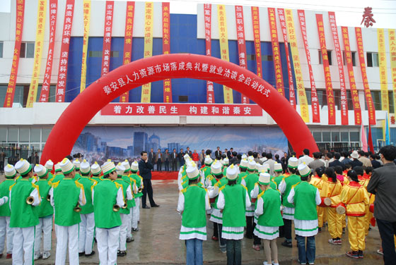 5月8日,秦安縣舉行人力資源市場落成典禮暨就業(yè)洽談會啟動儀式。應(yīng)邀出席落成典禮暨就業(yè)洽談啟動儀式的有省發(fā)改委就業(yè)處處長劉肇華、省人事廳人才資源管理處處長常文、人才交流部部長王川梅,市政府副市長趙衛(wèi)東,市勞動保障局副局長彭國斌、市人事局副局長文月平、市發(fā)改委王天錄副主任、市財政局張進(jìn)尚副局長;秦安縣四大組織主要領(lǐng)導(dǎo)及分管領(lǐng)導(dǎo),縣直有關(guān)部門、駐秦有關(guān)單位、有關(guān)企業(yè)和鄉(xiāng)鎮(zhèn)的負(fù)責(zé)同志;新疆娃哈哈集團(tuán)、新疆匯源公司等20多家用工單位、陜西振華學(xué)院等2家職業(yè)技術(shù)院校和部分高校畢業(yè)生、求職人員等。