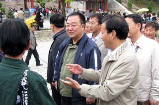 秦安縣委書記陳天雄和秦安縣人大常委會主任賈萬祥為秦安一中80周年校慶紀(jì)念碑揭碑