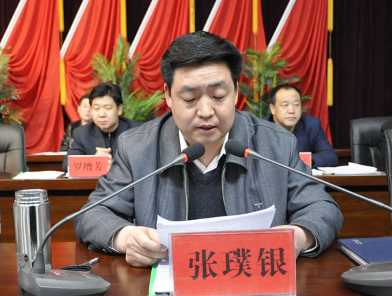 縣委常委、副縣長張璞銀宣讀縣委、縣政府《關于表彰2009年度目標管理責任書考核先進單位、先進個人及優(yōu)秀村干部的決定》