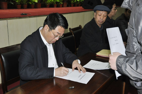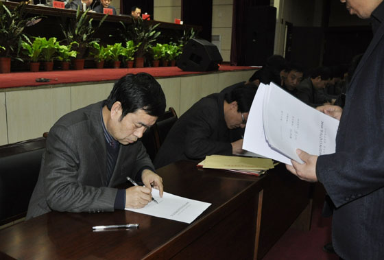 縣委書記陳天雄與縣領導簽定2010年度綜合目標管理責任書