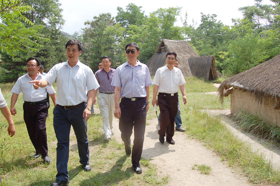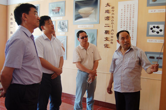 8月3日,全國政協(xié)外事委員會副主任、外交院院長趙進(jìn)軍一行三人在甘肅省外事辦綜合處副主任朱江渭,天水市政府副秘書長、外事僑務(wù)辦主任陳明達(dá),副主任王元成,秦安縣委書記徐健、副縣長羅增芳、縣委辦主任楊尚武等領(lǐng)導(dǎo)的陪同下參觀考察大地灣遺跡。