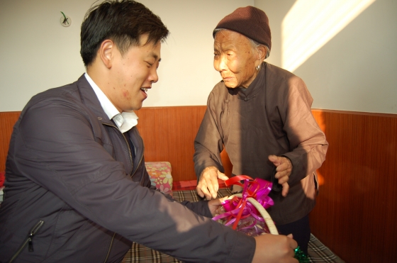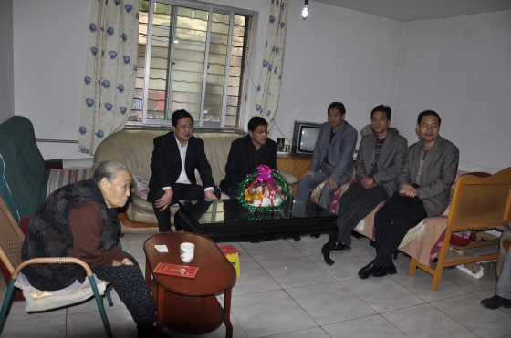 在重陽節(jié)來臨之際,10月15日上午,秦安縣委書記徐健、縣長王東紅分頭帶領(lǐng)縣委常委、組織部部長郭海軍,縣委常委、興國鎮(zhèn)黨委書記楊喜春、副縣長魏世中、縣委辦、政府辦、民政局負(fù)責(zé)人專程看望興國鎮(zhèn)賢門村何家總門104歲劉國慶、安家河王家巷3號94歲蒲氏、解放路振興樓1樓張蓮子、飲馬巷58號馬驂午老人,給她們送去了鮮花和慰問金,并代表黨和政府向老人致以節(jié)日的祝福。