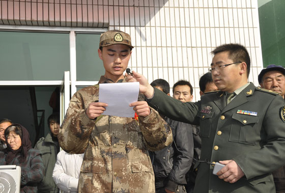 副縣長羅增芳向積極應(yīng)征報名、光榮參軍入伍的新兵同志表示最熱烈的祝賀。向踴躍送子參軍、支持國防建設(shè)的新兵家長致以崇高的敬意。在表示祝賀的同時,他希望入伍新兵在踏入軍營后,要以部隊為家,安心服役,愛軍習(xí)武,無私奉獻,盡快完成從地方青年向合格軍人的轉(zhuǎn)變,邁好軍旅生涯的第一步;要加強政治理論學(xué)習(xí),自覺學(xué)習(xí)實踐科學(xué)發(fā)展觀,不斷培育當(dāng)代革命軍人核心價值觀,努力提高思想政治覺悟,確保政治上的堅定;要服從命令,聽從指揮,嚴(yán)守紀(jì)律,培養(yǎng)和造就優(yōu)良的品質(zhì)和作風(fēng),爭做“政治合格、軍事過硬、作風(fēng)優(yōu)良、紀(jì)律嚴(yán)明”的優(yōu)秀戰(zhàn)士,自覺獻身國防事業(yè),為保衛(wèi)祖國貢獻青春和力量,以優(yōu)異的成績向家鄉(xiāng)人民匯報,為家鄉(xiāng)人民爭光。