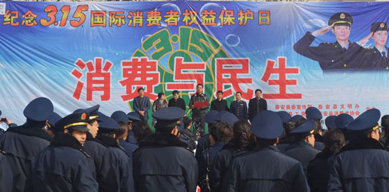 3月15日,秦安縣在興國(guó)廣場(chǎng)隆重舉行以“消費(fèi)與民生”為主題,紀(jì)念“3.15國(guó)際消費(fèi)者權(quán)益日”宣傳活動(dòng)啟動(dòng)儀式?h委常委、宣傳部長(zhǎng)李尚平,縣人大常委會(huì)副主任陳秦生,縣政府副縣長(zhǎng)李廣,縣政協(xié)副主席王蓉,縣工商、建設(shè)、質(zhì)監(jiān)、文化、衛(wèi)生、公安、綜合執(zhí)法等部門(mén)負(fù)責(zé)人和個(gè)體私營(yíng)企業(yè)代表共300余人參加了啟動(dòng)儀式。啟動(dòng)儀式上,縣委常委、宣傳部長(zhǎng)李尚平作了講話,縣工商局黨組書(shū)記、局長(zhǎng)馬念平,縣移動(dòng)公司經(jīng)理劉基平,秦安縣旺旺家電營(yíng)銷(xiāo)中心經(jīng)理馮旺生作了發(fā)言。