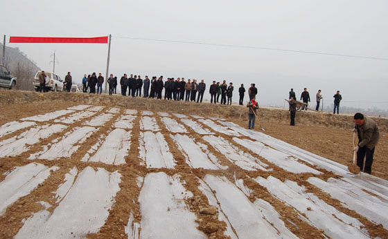 為了示范推廣全膜雙壟溝播技術(shù),秦安縣狠抓宣傳培訓(xùn)和技術(shù)服務(wù)工作?h鄉(xiāng)組成17個技術(shù)指導(dǎo)工作組和4個檢查督導(dǎo)工作組,下派行政干部233人、農(nóng)業(yè)技術(shù)人員216名,深入鄉(xiāng)鎮(zhèn)村組、田間地頭,進(jìn)行宣傳培訓(xùn)和現(xiàn)場指導(dǎo)。共舉辦培訓(xùn)班105期,現(xiàn)場會52次,培訓(xùn)農(nóng)民5.1萬人(次),出動宣傳車輛31多輛(次),發(fā)放宣傳資料4.6萬余份,刻錄發(fā)放技術(shù)光盤360盤,達(dá)到每個村組有一盤技術(shù)光盤,每戶有一個明白人。同時,縣上堅持集中連片、突出示范、抓點帶面的原則,按照“種植一塊成功一塊,種植一點引導(dǎo)一片”的要求,加強示范基點建設(shè),形成了“兩點三線”頂凌覆膜示范點。其中云山鄉(xiāng)張灣頂凌覆膜點、王尹鄉(xiāng)姚溝頂凌覆膜點、興豐鄉(xiāng)燕彎梁頂凌覆膜點、千戶鄉(xiāng)四坪頂凌覆膜點、五營麻溝頂凌覆膜點等示范點規(guī)模大、質(zhì)量高,發(fā)揮了良好的示范帶動效應(yīng)。