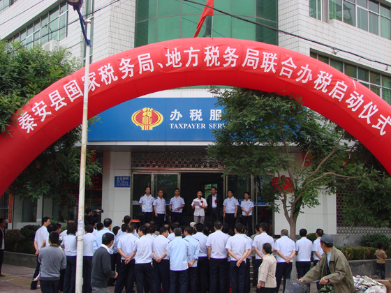 隨著縣委常委、副縣長李全明宣布秦安縣國家稅務局 秦安縣地方稅務局聯(lián)合辦稅正式啟動并與財政局長任發(fā)祥為聯(lián)合辦稅服務廳揭牌,標志著秦安縣國、地稅聯(lián)合辦稅工作正式開始。揭開了秦安縣國、地稅納稅服務工作新的一頁。