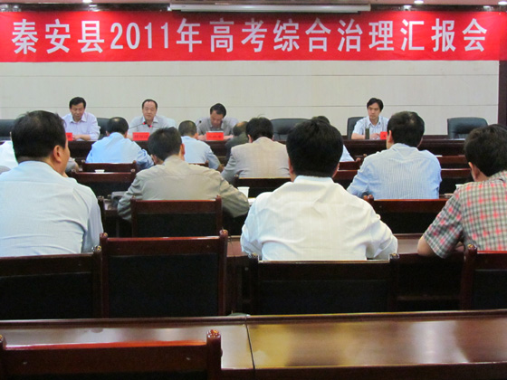 為了進一步加強我縣高考環(huán)境綜合整治力度,積極營造安全、安靜、良好的考試氛圍,努力維護高考的公平、公正和正常秩序,確保2011年高考平安順利進行。6月3日,我縣召開2011年全縣高考環(huán)境綜合整治工作匯報會,會議由縣政府副縣長、縣招委主任郭雙江主持。參加今天會議的有縣四大組織分管領導、縣招委成員、各考點主任,住建、交警、食藥監(jiān)、運管、興國、西川等部門和鄉(xiāng)鎮(zhèn)負責人以及秦融、天辰等賓館飯店負責人,共60余人。