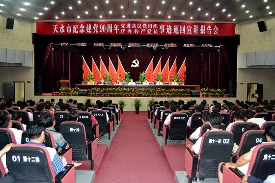 市委宣傳部副部長、市社科聯(lián)常務副主席、市委宣講團副團長漆應得講話指出,市委宣傳部、市委組織部、市委創(chuàng)先爭優(yōu)活動領(lǐng)導小組辦公室精心組織準備,在全市范圍內(nèi)自下而上層層評選推薦,組成了全市先進基層黨組織和優(yōu)秀共產(chǎn)黨員先進事跡報告團。報告團深入縣區(qū)和基層單位巡回宣講,是不斷推進全市創(chuàng)先爭優(yōu)活動向縱深發(fā)展的一項重要舉措,將激發(fā)和帶動廣大黨員干部干事創(chuàng)業(yè)的工作熱情,在推進我市經(jīng)濟社會跨越式科學發(fā)展,建設(shè)和諧天水的偉大實踐中建功立業(yè)。