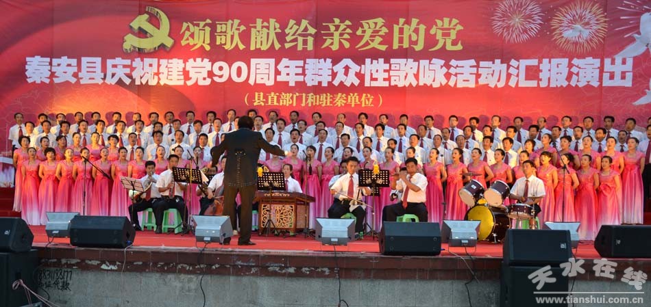 (秦安縣委宣傳部陳中校 李艷芳)90載風(fēng)雨滄桑,90載步履鏗鏘。6月29日晚,華燈初上,全縣廣大干部群眾早早來到文化廣場(chǎng)等待“頌歌獻(xiàn)給親愛的黨”群眾性歌詠活動(dòng)的開始。晚8 時(shí)整,由縣委、縣政府主辦,縣委宣傳部、縣委組織部、縣文明辦、縣教育體育局、縣文化廣播影視局承辦,甘肅重邦置業(yè)有限責(zé)任公司承辦的秦安縣慶祝中國(guó)共產(chǎn)黨成立90周年“頌歌獻(xiàn)給親給的黨”群眾性歌詠活動(dòng)正式開演。