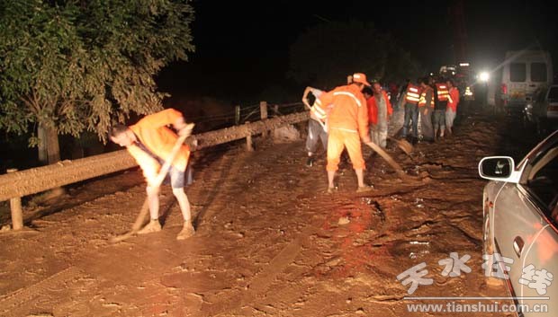 7月15號(hào)晚,秦安縣突降暴雨引發(fā)泥石流導(dǎo)致天巉公路兩車受損,車上13人死亡,6人受傷。暴雨還使秦安縣4個(gè)鄉(xiāng)鎮(zhèn)5萬(wàn)畝農(nóng)田和果林受災(zāi),初步估算損失在4500萬(wàn)元。