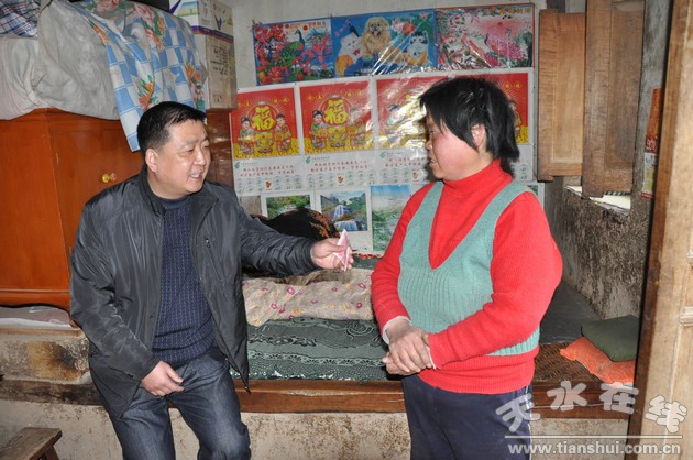 隨后,雷天錄一行分別深入到蔡繼生、蔡國(guó)來(lái)、蔡九榮等15戶(hù)幫扶對(duì)象家中,詳細(xì)了解他們的生產(chǎn)生活狀況,幫助分析貧困的原因和根源,為他們的增產(chǎn)、增收出主意、想辦法,并為他們送去了3200元慰問(wèn)金,支持他們提前做好春耕生產(chǎn)準(zhǔn)備。在蔡繼生家中,雷天錄與他促膝談心,仔細(xì)了解他家生產(chǎn)生活狀況,查看他家的存糧,并為他送去了300元慰問(wèn)金。當(dāng)?shù)弥拮映D暧胁,?jīng)濟(jì)收入主要以種地為主的情況后,鼓勵(lì)他一定要增強(qiáng)發(fā)展致富的信心,通過(guò)自己的辛勤努力,讓日子好起來(lái)。在聯(lián)系戶(hù)蔡增明家中,了解到一個(gè)兒子正在大學(xué)就讀,一個(gè)兒子在外打工,家中栽植了一些果樹(shù),雷天錄勉勵(lì)他一方面要好好供給孩子上學(xué),一方面要多掌握果樹(shù)管理的技術(shù)和知識(shí),科學(xué)管理好果園,實(shí)現(xiàn)更好的經(jīng)濟(jì)效益,生活早日好起來(lái)。當(dāng)離開(kāi)聯(lián)系點(diǎn)時(shí),雷天錄動(dòng)情地說(shuō),我們現(xiàn)在是“親戚”,有什么實(shí)際困難就跟我們說(shuō),今后我們會(huì)常來(lái),和你們一起想辦法,幫助大家盡快脫貧,早日致富。