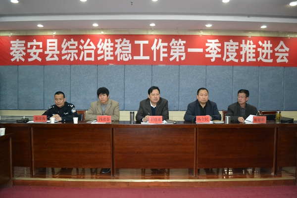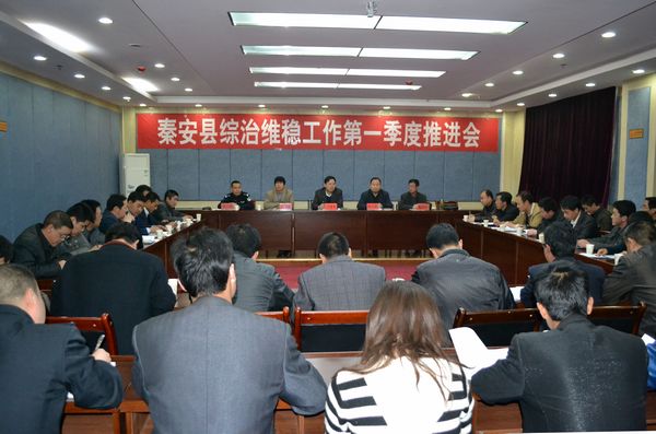 3月29日下午,秦安縣召開第一季度綜治維穩(wěn)工作推進(jìn)會(huì),聽取各鄉(xiāng)鎮(zhèn)第一季度綜治維穩(wěn)工作落實(shí)情況匯報(bào),安排部署下一階段的工作任務(wù)?h綜治辦、公安局、司法局、縣委防范辦負(fù)責(zé)人和各鄉(xiāng)鎮(zhèn)分管領(lǐng)導(dǎo)、司法所長(zhǎng)、綜治專職副主任共50多人參加會(huì)議,縣委常委、政法委書記丁曉來主持會(huì)議并講話。