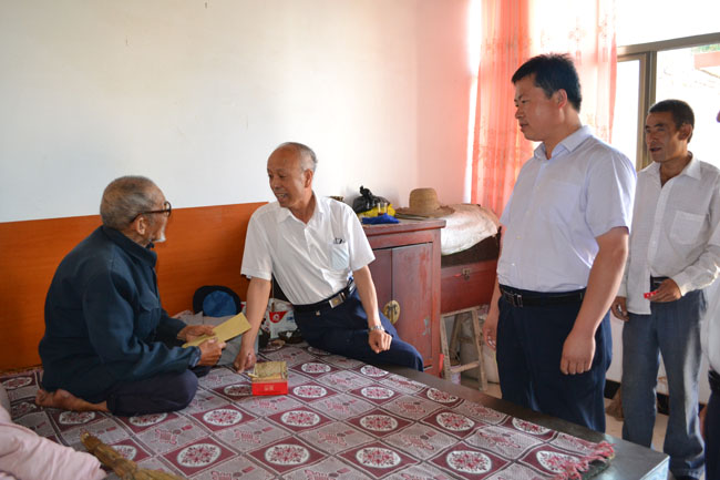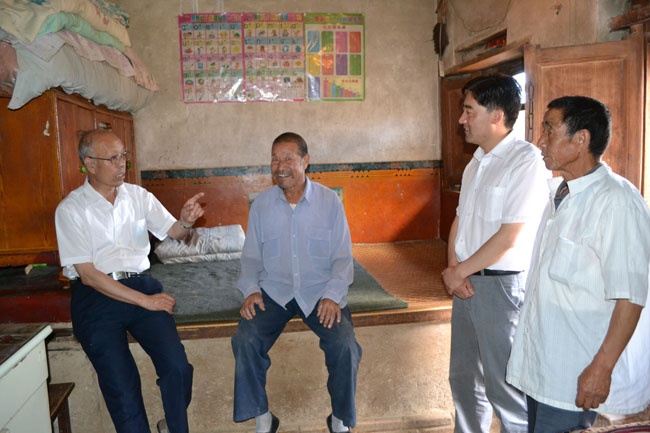 年過八旬的郭克昌老人是王尹鄉(xiāng)郭山村的農(nóng)民,他1956年入黨,多年來一直臥病在床但依舊熱心關(guān)注和支持著家鄉(xiāng)的發(fā)展。在他家中,賈萬(wàn)祥親切地握住老人的手和他拉家常,了解他們的生產(chǎn)、生活、家庭經(jīng)濟(jì)來源等情況,并代表縣委、縣政府給他送上慰問金,感謝他為黨的偉大事業(yè)做出的貢獻(xiàn)。當(dāng)聽說老人已經(jīng)有60多年黨齡,兒子在家務(wù)農(nóng),家庭困難時(shí)。賈萬(wàn)祥說,老黨員是黨和國(guó)家的寶貴財(cái)富,秦安縣經(jīng)濟(jì)社會(huì)發(fā)展取得的成就,離不開老黨員、老同志的支持、參與和奉獻(xiàn)。我們紀(jì)念建黨91周年,慶祝黨的節(jié)日,更要關(guān)注各行各業(yè)尤其是基層一線的老黨員所做的貢獻(xiàn),更要想方設(shè)法照顧好困難老黨員的生活。賈萬(wàn)祥叮囑隨行的鄉(xiāng)黨委負(fù)責(zé)人,要把老黨員、困難黨員的冷暖記在心里,對(duì)他們要給予更多的關(guān)心和愛護(hù),為他們排憂解難,幫助他們改善生活,讓他們安享晚年。