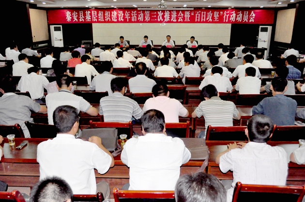 8月8日,秦安縣召開全縣基層組織建設(shè)年活動第三次推進(jìn)會暨“百日攻堅(jiān)”行動動員會,貫徹落實(shí)全市組織部長座談會暨第五次基層組織建設(shè)年活動推進(jìn)會會議精神,聽取各鄉(xiāng)鎮(zhèn)今年以來基層組織建設(shè)年活動主要工作進(jìn)展情況,總結(jié)分析我縣基層組織建設(shè)年活動中存在的主要問題和差距,對我縣基層組織建設(shè)年活動和“百日攻堅(jiān)”行動進(jìn)行全面安排部署。會議由縣委副書記裴貴軍主持。