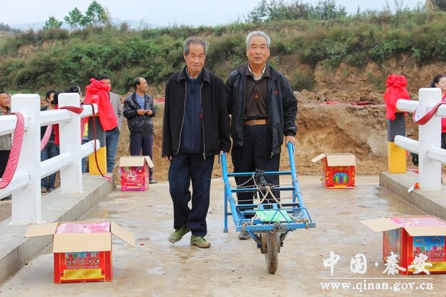 9月26日當天的郭山村人,格外高興。村民們擱下手中的農(nóng)活,一大早等待著新橋的開通儀式。當聯(lián)系該村的市縣鄉(xiāng)領(lǐng)導、聯(lián)系單位領(lǐng)導到村參加開通儀式時,村民們相擁前去握手問好,異口同聲說:“感謝你們、感謝你們。”可以看得出來全體村民的感激之情,這座“富民橋”的建成和使用,結(jié)束了困擾郭山村多年以來行路難的歷史,啟開了郭山村村民的致富之門,迎來了郭山村真正的春天,大家都親切地叫它“雙聯(lián)橋”。