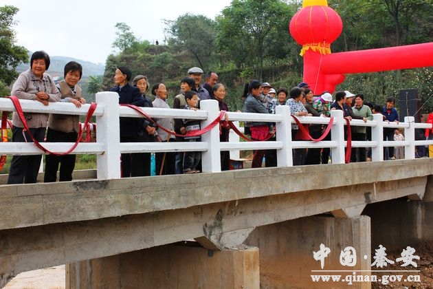 走進秦安縣王尹鄉(xiāng)郭山村谷陀組村口,一座剛剛建成的“富民橋”映入眼簾,全村男女老少站在新橋上你一言我一語談?wù)撝案幻駱颉睅淼膶嵒莺捅憷?/P>