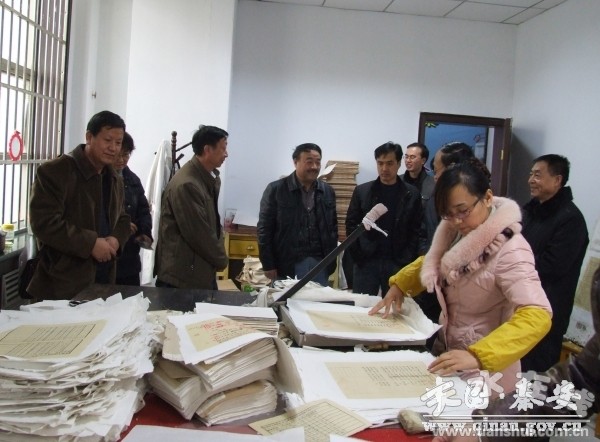 12月11日,省檔案局黨組成員、紀(jì)檢組長(zhǎng)孫小林帶領(lǐng)檢查考核組一行,在市檔案局局長(zhǎng)汪開(kāi)云、縣政府副縣長(zhǎng)羅增芳及縣檔案部門負(fù)責(zé)人的陪同下,對(duì)秦安縣2012年度檔案工作進(jìn)行了全面檢查考核。