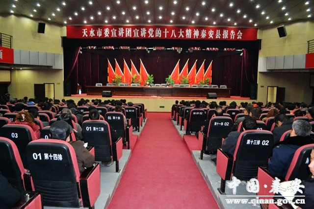 十八大精神宣傳深入人心。為了幫助全縣廣大黨員干部群眾深刻領(lǐng)會(huì)黨的十八大精神,進(jìn)一步把學(xué)習(xí)貫徹十八大精神引向深入,秦安縣組織縣委宣講團(tuán)分組深入鄉(xiāng)鎮(zhèn)村組,企業(yè)學(xué)校,開(kāi)展巡回宣講120多場(chǎng)次,受眾10000多人次;省政協(xié)副主席馬國(guó)瑜、十八大代表劉田家、天水師院負(fù)責(zé)人、聯(lián)系鄉(xiāng)鎮(zhèn)的縣級(jí)領(lǐng)導(dǎo)分別奔赴基層宣講十八大精神,和群眾面對(duì)面交流,全縣上下掀起了學(xué)習(xí)宣傳貫徹十八大精神的熱潮。