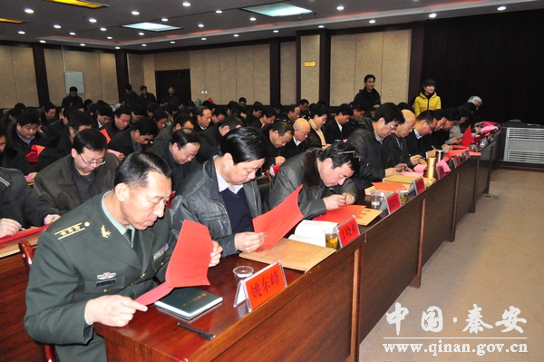 秦安縣委書記王東紅代表縣委班子作了述職述廉報(bào)告,同時(shí),代表縣委常委會(huì)就2012年度干部選拔任用工作向大會(huì)作了報(bào)告,并進(jìn)行個(gè)人述職述廉;縣委副書記、縣長程江芬代表縣政府班子作了述職述廉報(bào)告,并進(jìn)行個(gè)人述職述廉。大會(huì)對秦安縣市管領(lǐng)導(dǎo)班子和領(lǐng)導(dǎo)干部進(jìn)行了民主測評,對領(lǐng)導(dǎo)班子和領(lǐng)導(dǎo)干部定期考核、縣委抓基層黨建工作和執(zhí)行黨風(fēng)廉政建設(shè)責(zé)任制情況進(jìn)行了民主測評,對2012年度干部選拔任用工作和新選拔任用干部進(jìn)行了民主評議。