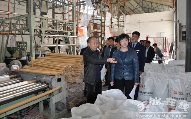 溫利平一行先后深入查看了雪源果業(yè)、長城果汁飲料有限公司、安伏果品交易市場、同輝塑業(yè)、福雨塑業(yè)、天水年年紅電腦繡花及保溫棉生產(chǎn)線項(xiàng)目建設(shè)、秦安縣鑫德紳服裝廠改建項(xiàng)目建設(shè)、城區(qū)生活污水處理廠、城南供熱項(xiàng)目建設(shè)、聯(lián)源蔬菜直銷店、磐業(yè)農(nóng)化農(nóng)資配送中心,詳細(xì)了解了蘭洽會簽約項(xiàng)目、山東簽約項(xiàng)目、名牌商標(biāo)注冊、萬村千鄉(xiāng)市場工程、外貿(mào)企業(yè)運(yùn)營等情況。