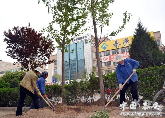 連日來(lái),秦安縣的主干道——成紀(jì)大道上出現(xiàn)了這樣一番景象:道路兩側(cè)的綠化帶旁多出了一些小土堆,一個(gè)個(gè)施工人員揮舞著鐵鍬和鋤頭,干得熱火朝天。不出幾天,一排排高大的銀杏和紅葉李取代了部分矮小的冬青,一番別樣的景色呈現(xiàn)在了市民面前。