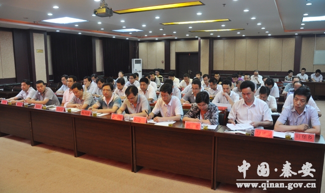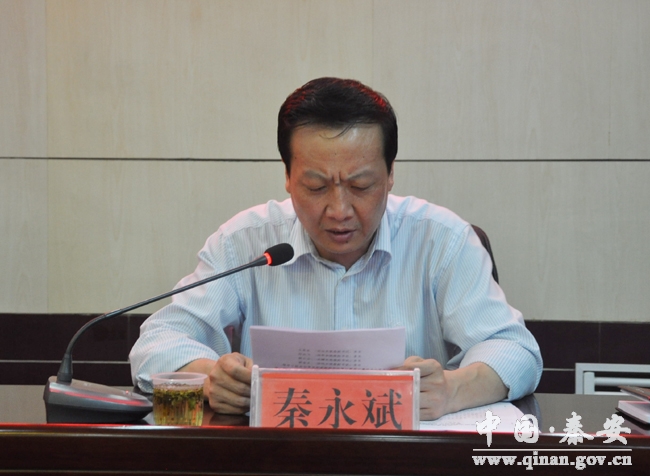 縣政府辦公室主任秦永斌宣讀《關(guān)于成立秦安縣暴洪災(zāi)害恢復(fù)重建和防震救災(zāi)工作領(lǐng)導(dǎo)小組的通知》