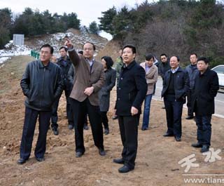12月11日,秦安縣委書記王東紅,縣委常委、縣政府副縣長郭雙江帶領(lǐng)縣委辦、林業(yè)局、果業(yè)局等部門負(fù)責(zé)人,先后深入千戶、西川兩鄉(xiāng)鎮(zhèn)就當(dāng)前農(nóng)業(yè)農(nóng)村重點(diǎn)工作進(jìn)行了檢查指導(dǎo),并對“四個一”工程的 “西部一梁”示范建設(shè)進(jìn)行了調(diào)研。