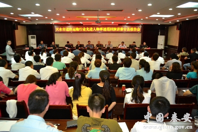 在全市上下深入貫徹落實(shí)黨的十八大、十八屆三中全會精神,廣泛開展第二批黨的群眾路線教育實(shí)踐活動和社會主義核心價(jià)值觀“24字人知人曉工程”之時(shí),天水市道路運(yùn)輸行業(yè)先進(jìn)人物事跡巡回演講團(tuán)于5月29日走進(jìn)秦安縣,開展演講活動。秦安縣委常委、縣政府副縣長郭雙江主持演講報(bào)告會,演講團(tuán)團(tuán)長、市交通運(yùn)輸局紀(jì)檢書記于占元,副團(tuán)長、市運(yùn)管局副局長張愛軍,市運(yùn)管局城運(yùn)科科長閆玉芳以及秦安縣交通運(yùn)輸行業(yè)干部職工130多人現(xiàn)場聆聽了報(bào)告會。