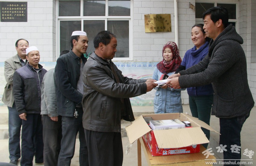 大陽鄉(xiāng)中莊村黨支部“黨員活動日”給參加活動的黨員發(fā)放筆和本子