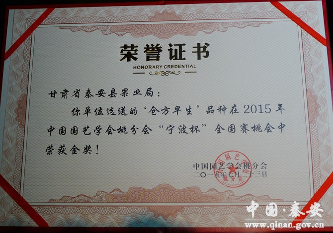 7月23日,在浙江省寧波市舉辦的中國園藝學會桃分會第五屆桃學術年會暨“寧波杯”賽桃會上,秦安縣選送的倉方早生、沙紅桃分別榮獲金獎和銀獎。