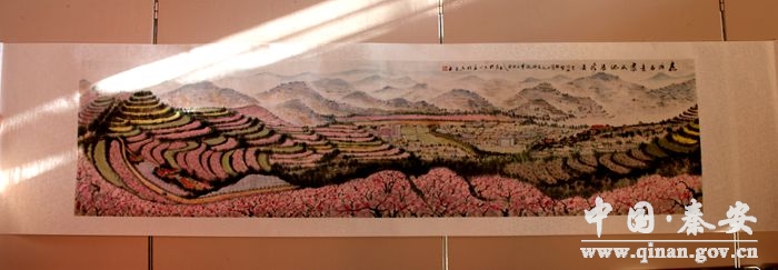 。ň栀(zèng)的書(shū)畫(huà)作品《桃鄉(xiāng)春意濃 成紀(jì)展新姿》)