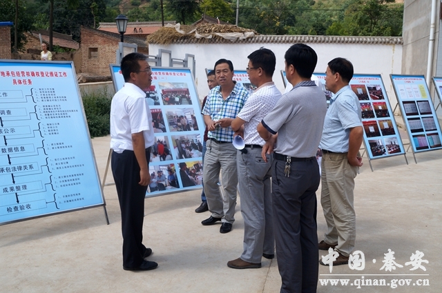檢查組先后深入五營鄉(xiāng)邵店村設施蔬菜基地建設示范點、五營鄉(xiāng)臥牛坪中藥材標準化生產(chǎn)示范園建設示范點以及五營鄉(xiāng)薛李村等地,通過現(xiàn)場觀摩、聽取匯報、查閱資料等方式,對秦安縣2015年度市級農(nóng)業(yè)科學發(fā)展示范點建設、農(nóng)村土地承包經(jīng)營權確權登記頒證進展、農(nóng)村土地流轉(zhuǎn)、新型農(nóng)業(yè)經(jīng)營主體培育等工作進行了全面檢查。